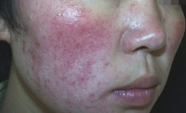 臨床表現(xiàn):紅斑、丘疹、腫脹、毛細(xì)血管擴(kuò)張、灼痛、瘙癢,膿皰,舌質(zhì)紅絳,苔黃,脈洪數(shù)。
