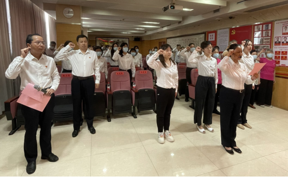 黨委書記朱慧蘭帶領(lǐng)新黨員入黨宣誓、老黨員重溫入黨誓詞,他們面向黨旗,舉起右拳莊嚴(yán)宣誓,在鏗鏘有力的宣誓聲中接受精神洗禮。