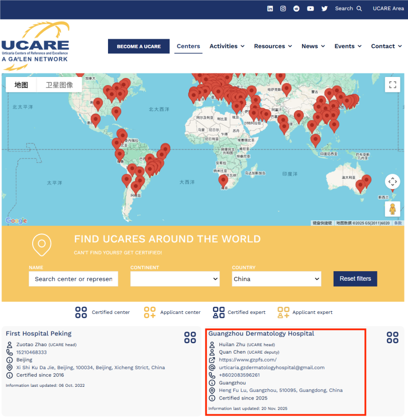 2025年11月20日,我院正式獲得全球過敏與哮喘歐洲網(wǎng)絡(luò)(Global Allergy and Asthma European Network, GA²LEN)頒發(fā)的UCARE(Urticaria Centers of Reference and Excellence)認(rèn)證。這一國際權(quán)威認(rèn)證標(biāo)志著我院在蕁麻疹專病領(lǐng)域的診療水平、科研能力與疾病管理體系已達(dá)到全球領(lǐng)先標(biāo)準(zhǔn)。