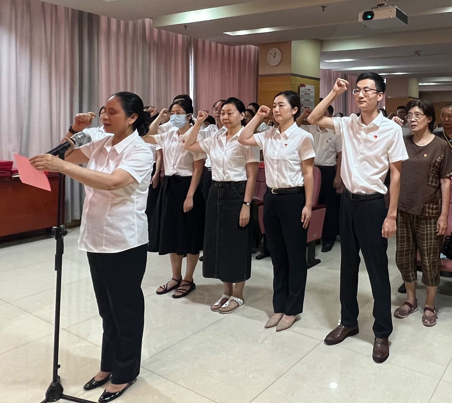 黨委書(shū)記朱慧蘭帶領(lǐng)新黨員入黨宣誓、老黨員重溫入黨誓詞,錚錚誓詞,拳拳紅心,鏗鏘有力的誓詞表達(dá)了同志們的莊嚴(yán)承諾,彰顯皮防人踐行黨的事業(yè)薪火相傳。