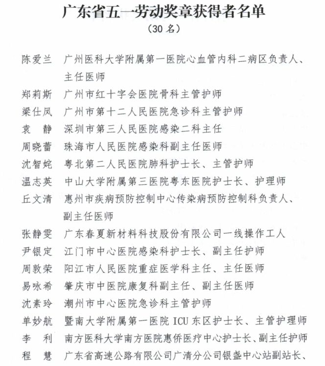 全面貫徹習(xí)近平新時(shí)代中國(guó)特色社會(huì)主義思想和黨的十九大精神,大力弘揚(yáng)勞模精神、勞動(dòng)精神、工匠精神,特別是新冠疫情發(fā)生以來,全省醫(yī)療戰(zhàn)線上的女職工積極響應(yīng)黨中央、國(guó)務(wù)院和省委、省政府關(guān)于疫情防控重要布署,經(jīng)過不懈努力,我所朱慧蘭書記被省總工會(huì)授予“廣東省五一勞動(dòng)獎(jiǎng)?wù)隆睒s譽(yù)稱號(hào)!