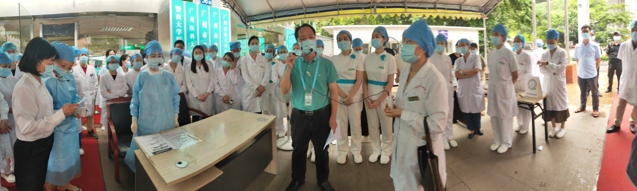 為積極應(yīng)對廣州市新冠肺炎疫情,完善常態(tài)化防控機制,提升醫(yī)務(wù)人員對發(fā)熱患者的應(yīng)急處理能力,2021年6月4日中午,在葉興東副所長的領(lǐng)導(dǎo)下,醫(yī)務(wù)科組織各臨床科室、后勤管理科,在所總部北入口平臺舉行新冠肺炎疫情防控預(yù)檢分診應(yīng)急演練和院感相關(guān)知識培訓(xùn)。