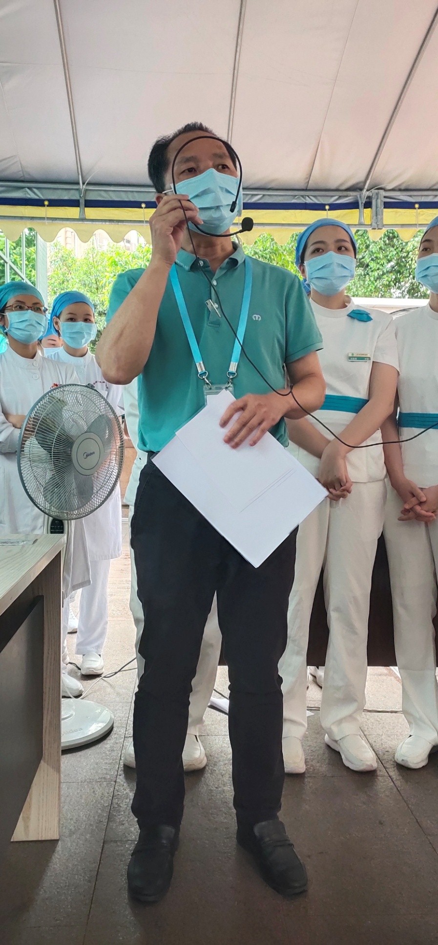 接下來的演練和培訓(xùn)中,黃茂芳科長分別就模擬各類患者、陪同家屬、黃碼等情形就診分檢的真實場景,對每個環(huán)節(jié)進(jìn)行了演練。