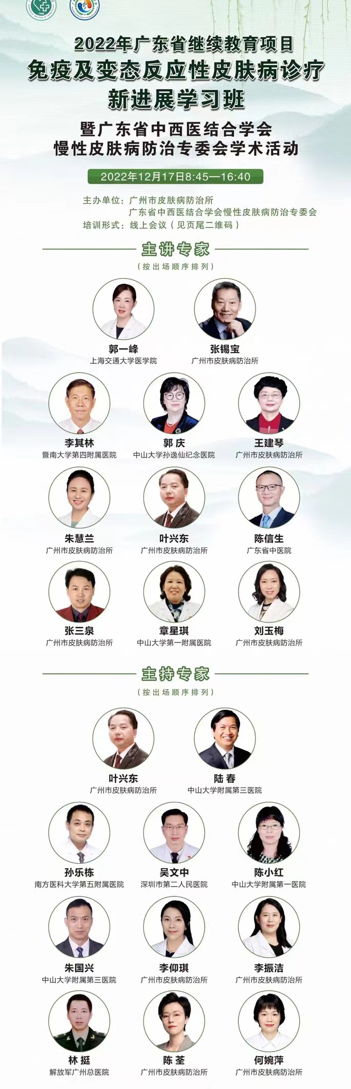 疫情也許阻擋了我們線下相聚,但卻無法阻礙我們線上的學術交流。為了使更多從事皮膚病相關工作的醫(yī)療技術人員可以進一步了解掌握免疫及變態(tài)反應性皮膚病基礎研究及臨床診療最新進展,廣州市皮膚病防治所和廣東省中西醫(yī)結合學會慢性皮膚病防治專委會聯(lián)合舉辦的省級繼續(xù)醫(yī)學教育項目“免疫及變態(tài)反應性皮膚病診療新進展學習班”線上會議于2022年12月17日順利召開。本次會議邀請了二十余名省內外知名專家線上講學,對各種免疫及變態(tài)反應性皮膚病進行了精讀講解。會議吸引了眾多同仁參加,學員們都表示本次會議令人受益匪淺。
