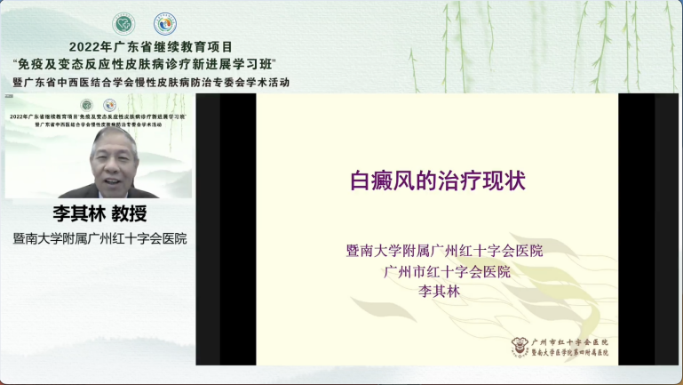 暨南大學第四附屬醫(yī)院皮膚科主任醫(yī)師李其林教授為大家講授了《白癜風里的治療現(xiàn)狀》。李教授針對白癜風治療中的難點和誤區(qū)進行了全方位的講解,提出白癜風的治療需要因人而異,提供個體化治療。