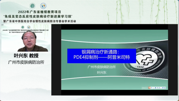 廣州市皮膚病防治所副所長、廣東省中西醫(yī)結合學會慢性皮膚病防治專委會主委葉興東教授帶來了《銀屑病治療新通路——PDE4抑制劑》的講座內容。銀屑病是一種免疫介導的慢性、復發(fā)性疾病,葉教授從銀屑病發(fā)病機制以及PDE4抑制劑作用通路來為大家講解了這種新型藥物在治療銀屑病中的作用機制,為學員們提供了銀屑病治療上的新思路。