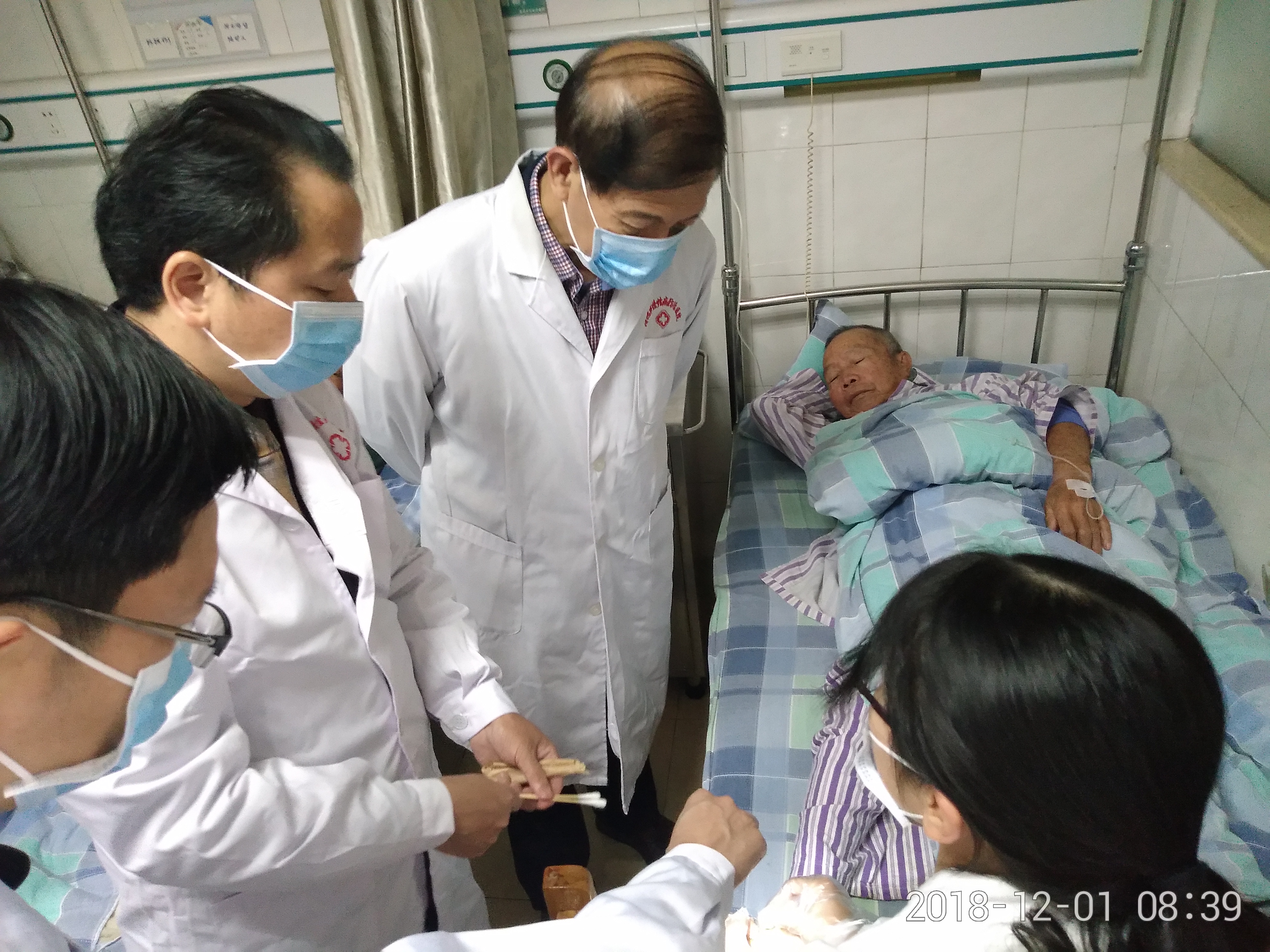 2018年世界艾滋病日的主題是“主動(dòng)檢測(cè)、知艾防艾,共享健康”。12月1日一早,在結(jié)束了前一天梅毒綜合防治培訓(xùn)班授課的專家們來到清遠(yuǎn)慢性病防治醫(yī)院進(jìn)行疑難病例現(xiàn)場(chǎng)查房。廣州市皮膚病防治所副所長葉興東教授、廣州市紅十字會(huì)醫(yī)院皮膚科主任李其林教授以及廣州市皮膚病防治所醫(yī)務(wù)科科長黃茂芳主任醫(yī)師在皮膚科住院病區(qū)聽取病例匯報(bào)后,專家們親自對(duì)患者進(jìn)行查體,針對(duì)患者診療中存在的難題進(jìn)行鑒別、分析,以啟發(fā)式提問引導(dǎo)醫(yī)師尋找最佳診療方案。通過形象的臨床病例教學(xué)促進(jìn)了醫(yī)師皮膚診療水平的提高。