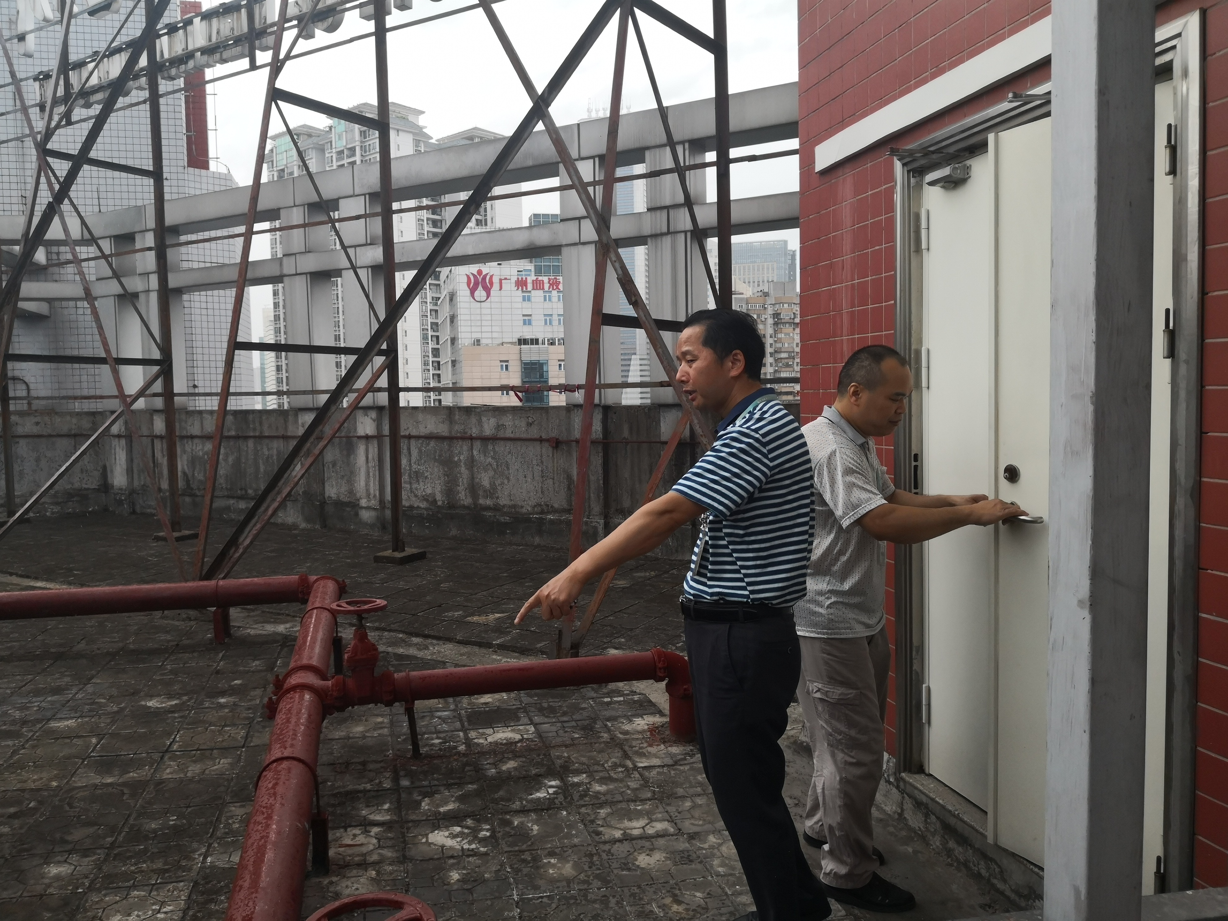 同時(shí),葉興東副所長(zhǎng)也在所本部業(yè)務(wù)大樓組織了相關(guān)安全檢查,重點(diǎn)檢查了12樓天臺(tái)、停車場(chǎng)、高低壓電房等部位。他要求值班的工作人員加強(qiáng)對(duì)業(yè)務(wù)大樓及周邊設(shè)施的巡查,特別是天臺(tái)的標(biāo)牌,防止有脫落傷人的危險(xiǎn)。葉副所長(zhǎng)還要求提醒停放在本所范圍內(nèi)的車輛及時(shí)移走,避免被樹枝壓傷,要求后勤管理科與綠化部門溝通,對(duì)本所范圍內(nèi)的樹木加強(qiáng)管理。