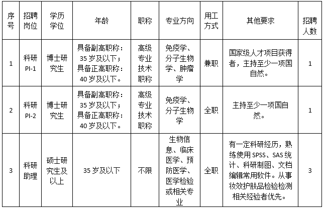 廣州市皮膚病醫(yī)院是廣州市衛(wèi)生健康委員會下屬公益二類事業(yè)單位,F(xiàn)根據(jù)工作需要,面向社會公開招聘科研PI、科研助理,具體招聘事項公告如下: