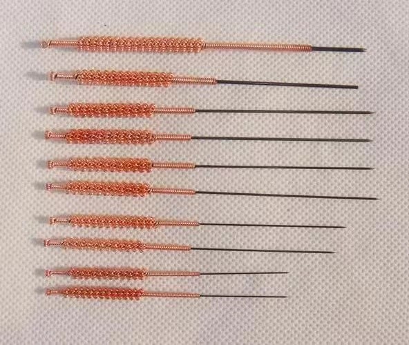 5. 火針:選背穴,如肺俞,脾俞,胃俞,膈俞,熱重加大椎,便秘加大腸俞,月經(jīng)不調(diào)加次髎,常規(guī)消毒后,取火針在酒精燈上將針尖燒紅后,迅速直刺各穴,每穴點刺3下,隔日一次。