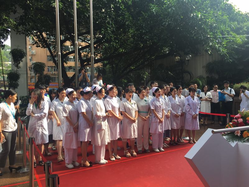 啟動(dòng)會(huì)和揭牌儀式結(jié)束后,皮膚科楊艷副主任醫(yī)師、李薇副主任醫(yī)師、田歆主治醫(yī)師在一樓南平臺(tái)為特應(yīng)性皮炎患者進(jìn)行了義診咨詢(xún),百多名患者慕名而來(lái),參加義診的醫(yī)生對(duì)患者提出的問(wèn)題耐心地進(jìn)行了解答。