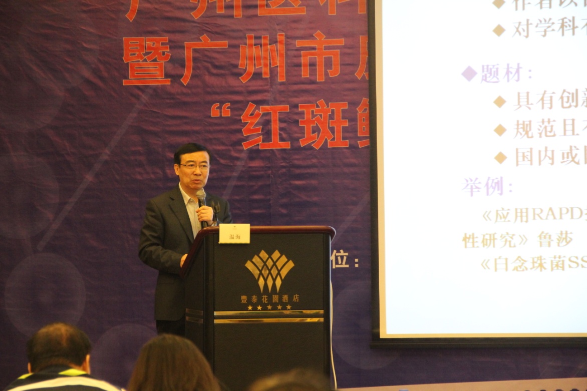本次研究生論壇邀請(qǐng)到中華醫(yī)學(xué)會(huì)皮膚性病學(xué)分會(huì)前主任委員張建中教授、中華醫(yī)學(xué)會(huì)中西醫(yī)結(jié)合分會(huì)主任委員溫海教授、廣東省醫(yī)學(xué)會(huì)皮膚性病學(xué)分會(huì)名譽(yù)主任委員曾凡欽教授、中華醫(yī)學(xué)會(huì)皮膚性病學(xué)分會(huì)常委賴維主任、廣州醫(yī)科大學(xué)皮膚病研究所所長(zhǎng)、廣東省醫(yī)師協(xié)會(huì)皮膚科醫(yī)師分會(huì)主任委員張錫寶教授、廣州市皮膚病防治所所長(zhǎng)王建琴教授、廣州市皮膚病防治所副所長(zhǎng)朱慧蘭教授、廣州市皮膚病防治所副所長(zhǎng)葉興東教授、暨南大學(xué)華僑醫(yī)院皮膚科主任鄧列華教授以及廣州醫(yī)科大學(xué)第一附屬醫(yī)院皮膚科主任熊春萍教授、廣州醫(yī)科大學(xué)第二附屬醫(yī)院皮膚科主任楊文林教授、廣州醫(yī)科大學(xué)第三附屬醫(yī)院皮膚科主任翁智勝教授、廣州醫(yī)科大學(xué)第四附屬醫(yī)院皮膚科主任張武教授、廣州醫(yī)科大學(xué)第五附屬醫(yī)院皮膚科主任雷水生教授共同出席了本次會(huì)議。參加本次研究生論壇的有來(lái)自中山醫(yī)科大學(xué)、南方醫(yī)科大學(xué)、暨南大學(xué)、汕頭大學(xué)及廣州醫(yī)科大學(xué)的研究生以及東莞、深圳、英德等地的皮膚科醫(yī)生。