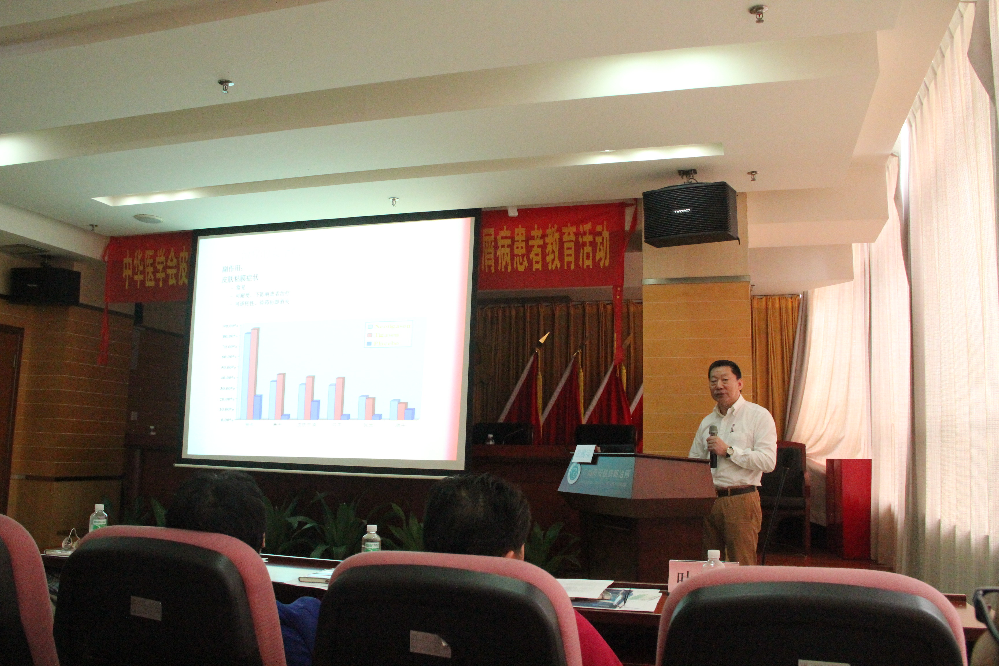 上午針對(duì)臨床皮膚科醫(yī)生的繼續(xù)教育活動(dòng)中,張學(xué)軍教授、史玉玲教授、張錫寶教授、王建琴教授給皮膚科臨床醫(yī)生帶來了“MTX-中重癥銀屑病治療的首選藥”“各國(guó)銀屑病的診療指南解讀”“維甲酸類藥物在銀屑病中的應(yīng)用”“免疫抑制劑在銀屑病中的應(yīng)用”的專業(yè)知識(shí)講座,能容納120人的教室座無虛席。各位國(guó)內(nèi)知名教授均是圍繞銀屑病的規(guī)范化治療方案及常用藥物如何規(guī)范使用進(jìn)行講解,講課內(nèi)容貼近于臨床、實(shí)用,學(xué)術(shù)氛圍濃厚。